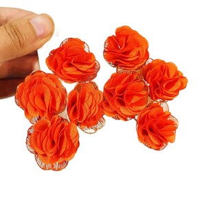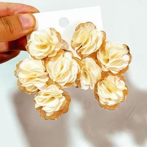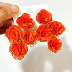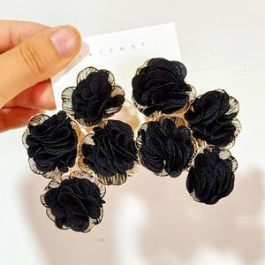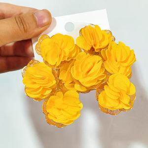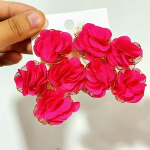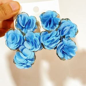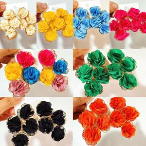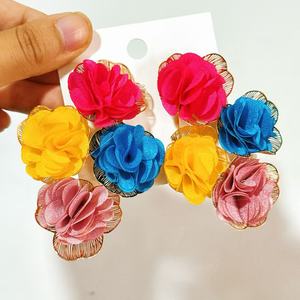 新款布艺彩色花朵耳环 手工四朵花金属耳坠网纱雪纺花瓣耳饰跨境