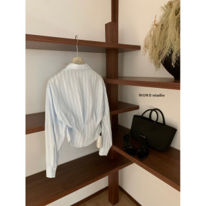 塞纳WGWE6919法式简约条纹长袖Polo领上衣新款设计感衬衣显瘦衬衫