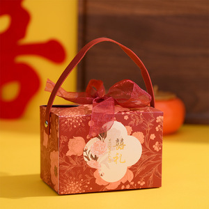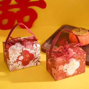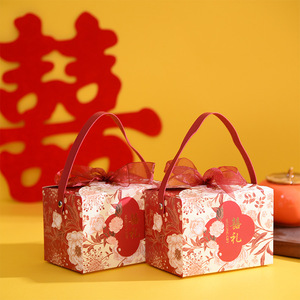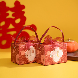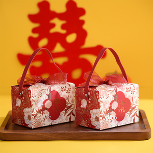 中国风结婚喜糖盒婚礼皮质手提中式纸盒结婚喜糖手提中式礼盒