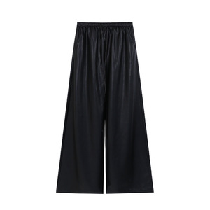 爱西里2025秋简约风高级时髦感pu皮松紧腰头抽绳阔腿裤长裤A1587