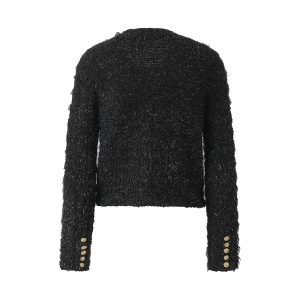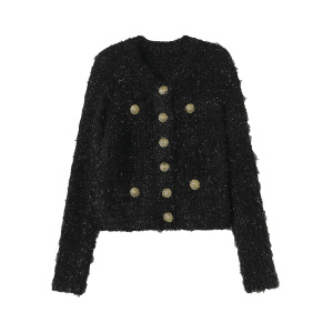 B家 2025早秋名媛小香风金属扣垫肩圆领长袖针织开衫显瘦外套女