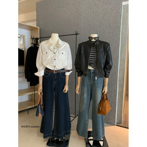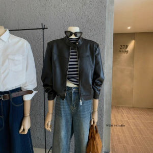 塞纳WGWE7052黑色皮衣外套女秋季百搭酷飒风小个子机车复古短外套