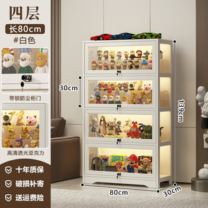 升级带灯【奶油白】四层80CM【三面透明-翻门防尘】