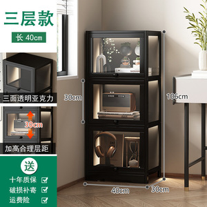 【钢琴黑】三层40款【三面透明-翻门防尘】