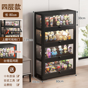 【钢琴黑】四层80【三面透明-翻门防尘】