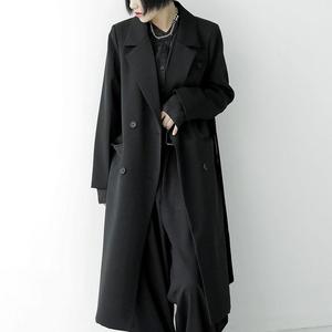 黑色双排扣长款西装外套女中长款2025秋冬新款韩版宽松风衣外套