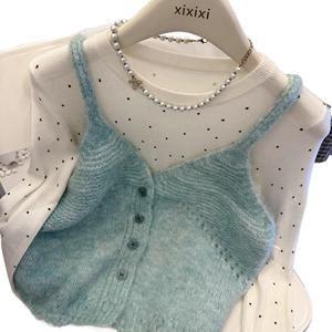 氛围感温柔彩纱针织吊带背心女秋季新款百搭显瘦气质软糯毛衣上衣