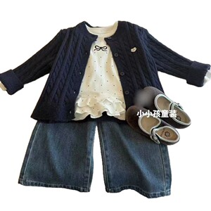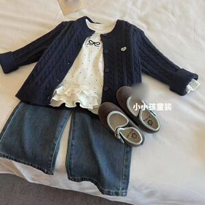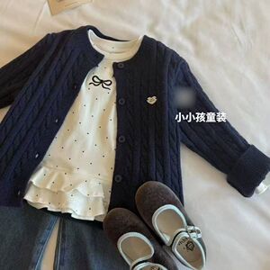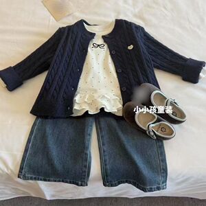 韩国女童纽扣毛衣中小童秋冬装麻花针织开衫宝宝百搭毛线复古外套