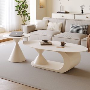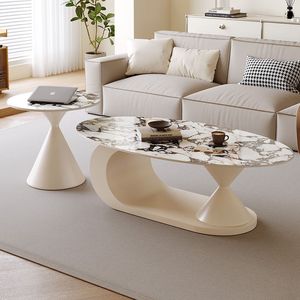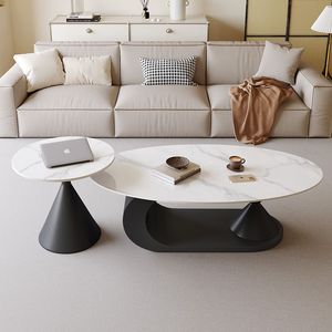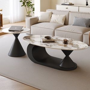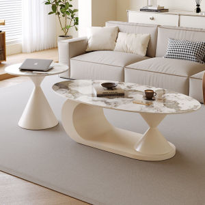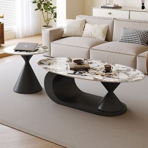 意式极简岩板茶几椭圆形家用客厅小户型设计师新款茶几边几组合