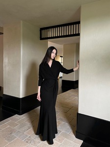 5werkwen 14G羊毛针织衫上衣女春夏黑色赫本慵懒风松弛感长袖上衣
