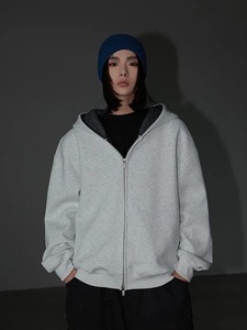 美式潮牌连帽卫衣男女款重磅拼色开衫外套高级感复古休闲情侣上衣