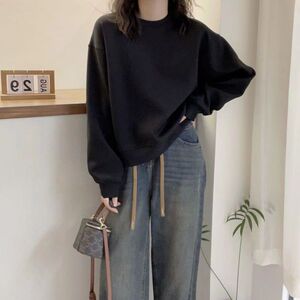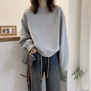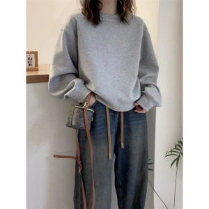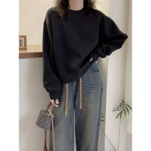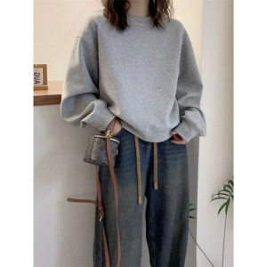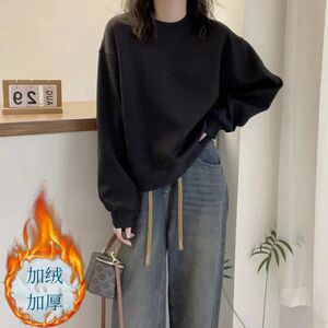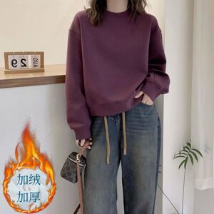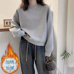 秋冬季圆领长袖加绒加厚女装卫衣2025冬款百搭宽松休闲洋气上衣潮