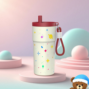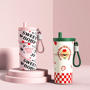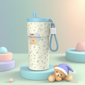 新款大容量冰霸杯女生高颜值便携把手吸管杯316卡通不锈钢保温杯