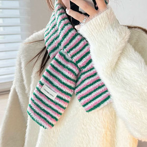 2025新款短款ins韩版小众条纹针织围巾女 冬季时髦交叉保暖围脖潮