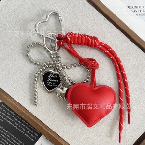 可爱桃心皮质钥匙扣miu系皮质包包挂件 包包挂件钥匙扣挂饰批发