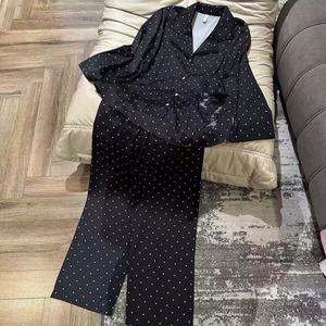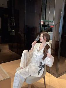 睡衣女冰丝秋冬新款波点长袖蕾丝高级感蝴蝶结家居服套装可外穿