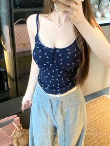 RHGD实拍2025 赵露丝同款 华夫格棉感碎花吊带女上衣女背心