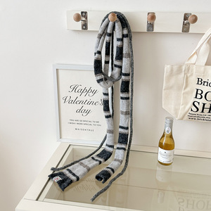 新款韩国小众设计羊毛长条围巾女秋冬时尚百搭双绳细窄条纹法棍潮