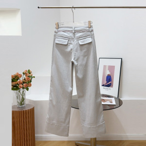 小禾25秋夏新款土壤牛仔棉质牛仔布嵌条格子直筒裤藏肉白色牛仔裤