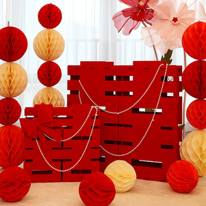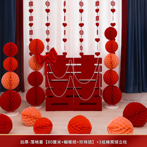 加厚-落地喜【80厘米+蝴蝶结+珍珠链】+3组14个蜂窝球立柱