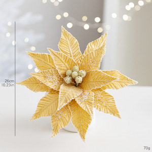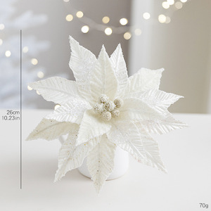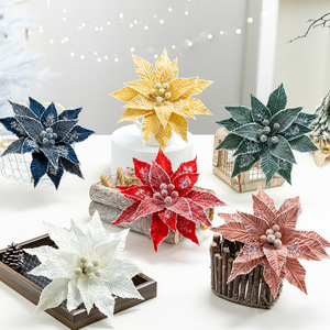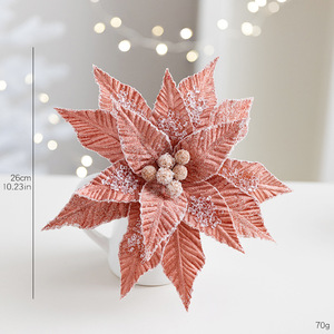 跨境新品圣诞装饰花圣诞树红色植绒撒粉花圣诞节场景布置装饰品