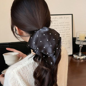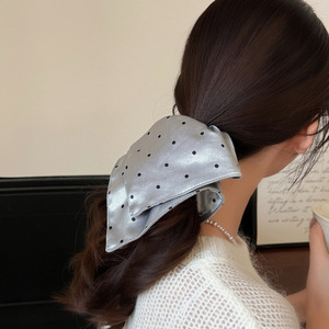 韩系褶皱亮面波点大肠发圈时尚高级感发绳简约通勤百搭方巾头绳女