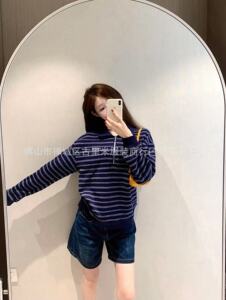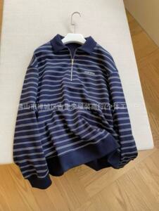 25初秋新款字母刺绣m系学院风徽标条纹半拉链长袖polo衫翻领卫衣