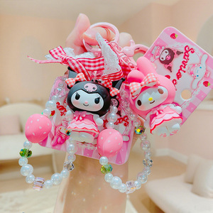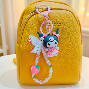 正版三丽鸥格纹草莓系列库洛米玉桂狗公仔钥匙扣挂件女生背包挂饰