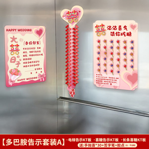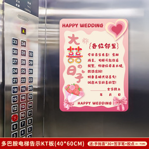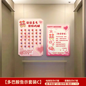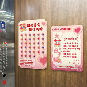 电梯结婚告示喜糖果粘贴板电梯海报套装喜字贴kt板小区布置装饰