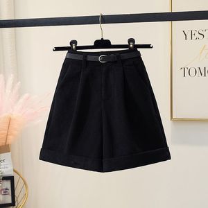 大码灯芯绒短裤女秋冬新款胖mm阔腿宽松百搭裤子显瘦ins潮休闲裤