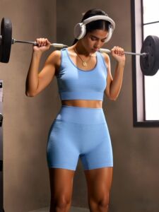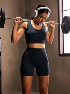 欧美无缝运动套装女速干健身防震背心跑步瑜伽健身服文胸短裤套装