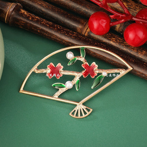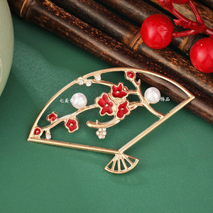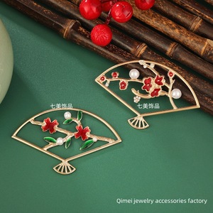 新中式文艺扇形梅花胸针配件手工DIY旗袍团扇发簪饰品合金小吊坠