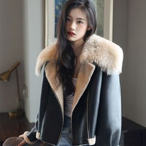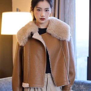 2025年冬季新款美利奴皮毛一体外套女短款机车翻领羊羔毛皮草大衣