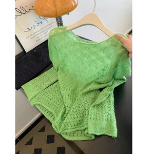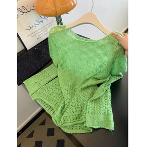 巨显白~克莱因蓝软糯镂空针织衫女2025早秋气质显瘦长袖上衣新款