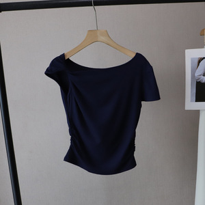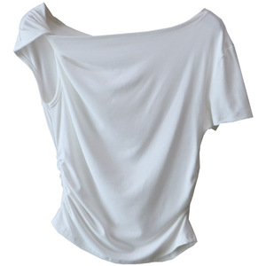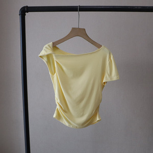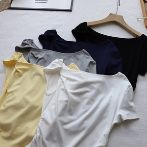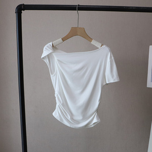 [比正]2025秋季新款韩版露肩扭结设计短款显瘦百搭短袖T恤女4971