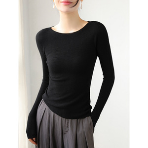 高端扬子纱无缝羊毛肌理感修身内搭女2025秋冬圆领叠穿打底毛衣灰