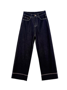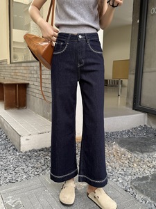 镇店王牌直腿裤~深蓝色阔腿牛仔裤女2025秋季宽松高腰刺绣直筒裤