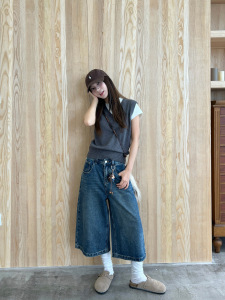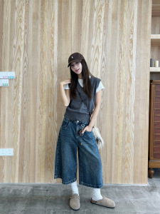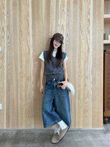 [简裁]T-PLATFORM 美式复古高街牛仔裤个性穿搭早秋七分裤93025