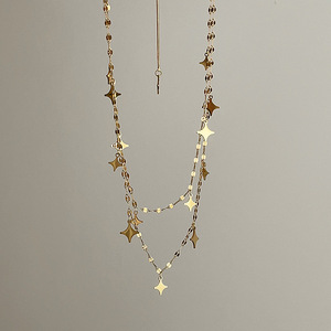 轻奢质感星芒亮片流苏双层项链女辣妹甜酷个性精致时尚颈链锁骨链