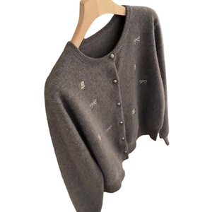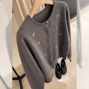 毛衣外套秋软糯灰色刺绣针织开衫百搭时尚洋气显瘦减龄