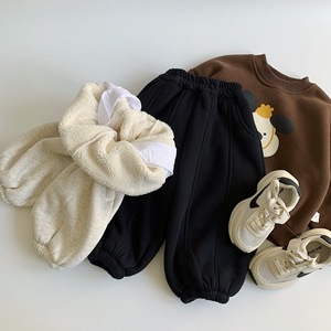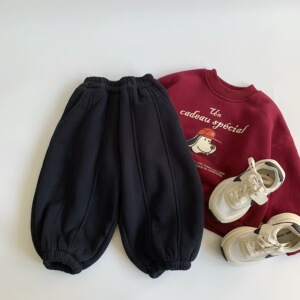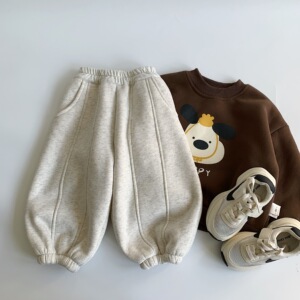 麦宝儿童裤子2025冬季新款男童纯色加绒运动裤女宝宝加厚束脚裤潮