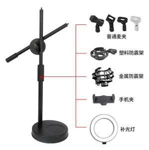 跨境俯拍桌面手机支架圆盘底座直播麦克风支架可伸缩摄影俯拍支架