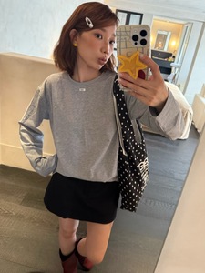 2025早秋新款 韩国小众grove车静媛同款简约百搭纯色圆领长袖上衣