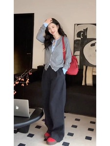 早秋新款韩系假两件套慵懒针织衫毛衣开衫高级感小个子气质上衣