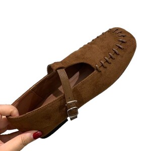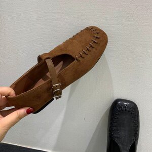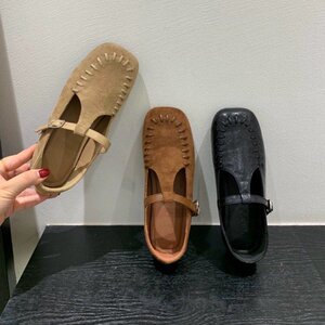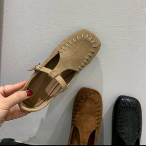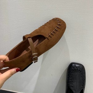 粗跟浅口玛丽珍鞋方头法式平底单鞋秋季新款休闲软底鞋子奶奶鞋子