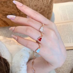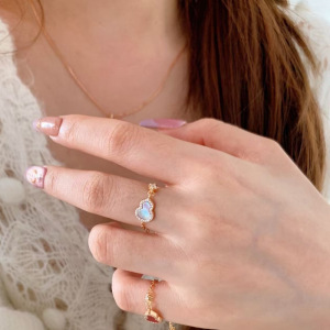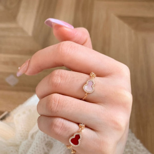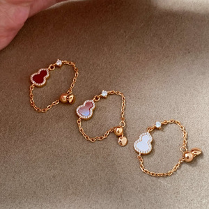 小红书爆款粉色贝母葫芦戒指2025新款新中式国风福禄抽拉调节尾戒