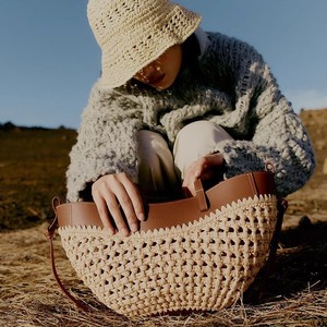 跨境2025新款Polen手提编织包潮休闲简约大容量沙滩包草编单肩包