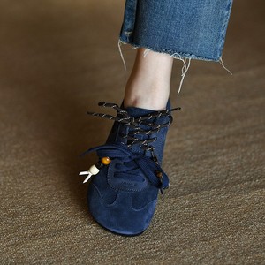 自留版~磨砂皮蓝色德训鞋女时尚休闲鞋2025新款秋季真皮女鞋单鞋