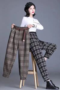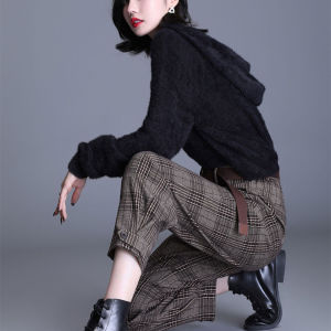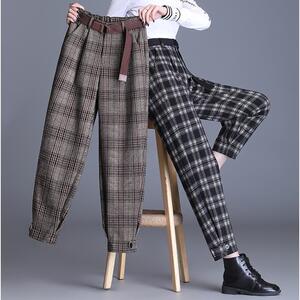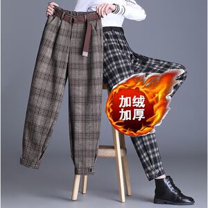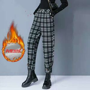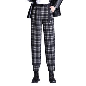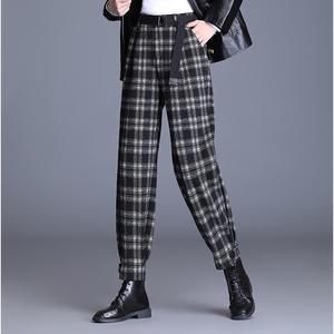 毛呢格子哈伦裤女2025春秋款松紧高腰宽松显瘦黑白格萝卜裤老爹裤