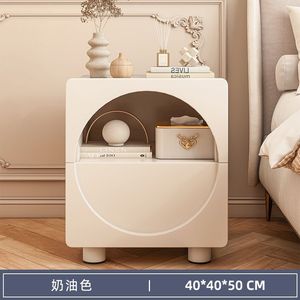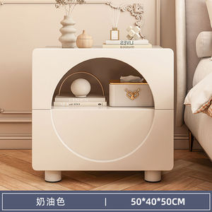 奶油色床头柜卧室家用现代简约轻奢床边小型储物柜床边柜小柜子